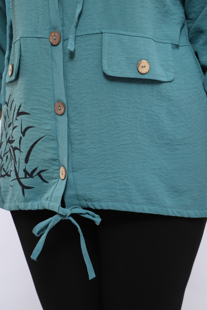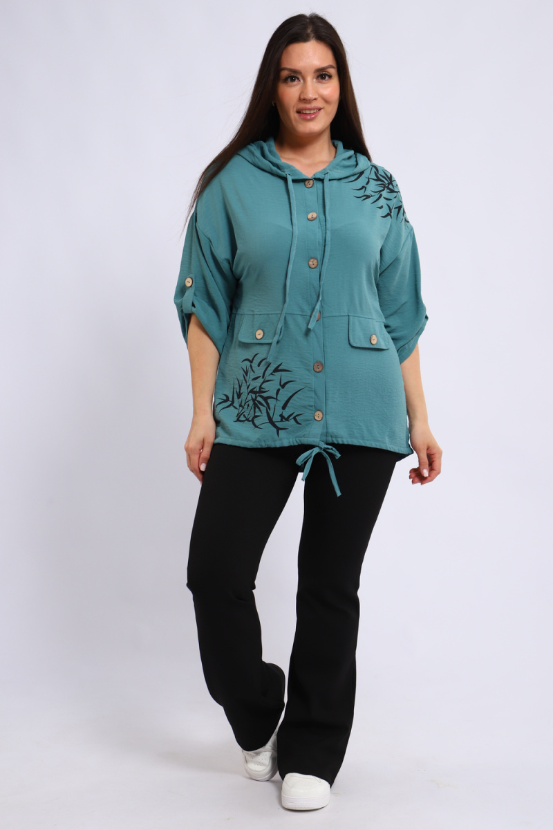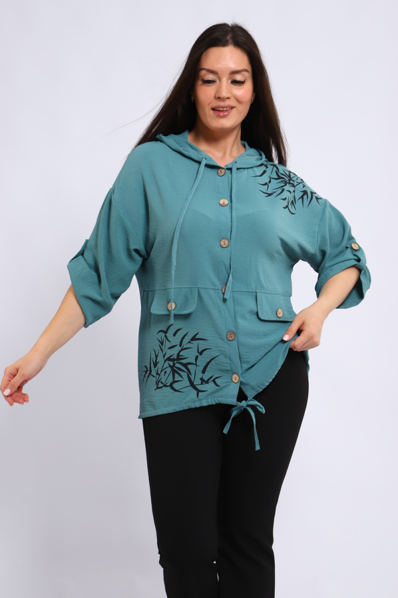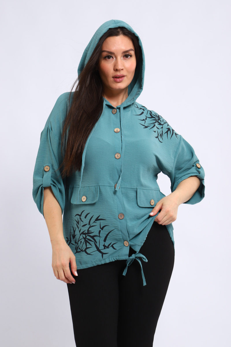Ищете универсальную и стильную рубашку? Представляем женскую рубашку на пуговицах с капюшоном, идеальную для создания модных образов. Рукав три четверти с удобными патами позволяет регулировать длину, подстраиваясь под ваш стиль и погоду. Оригинальные детали, такие как два декоративных клапана на полочке и уникальная шелкография, добавляют рубашке неповторимый шарм.